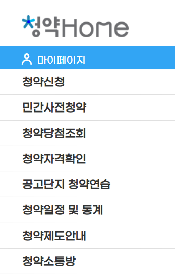 아파트분양 청약일정 제공 청약신청 청약자격확인 당첨자조회 분양 아파트/평형별 신청경쟁률 확인 관심지역 알림서비스 인근시세 지도서비스 불법분양권공시내역 서비스 청약통계 현황 규